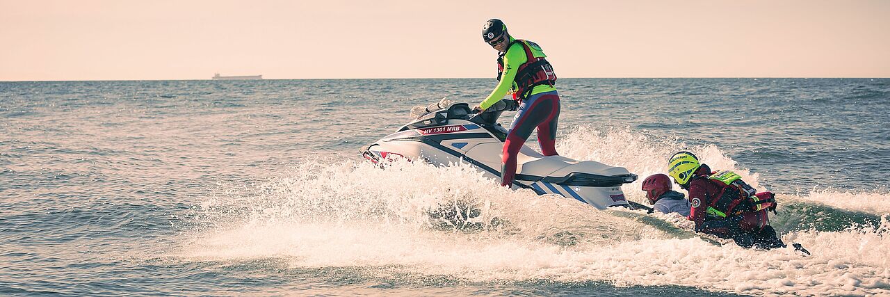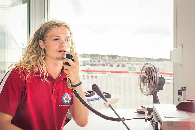 Dabei werden von dem Hauptturm: Warnmünde Turm 3 die 6 weiteren Wasserrettungsstationen koordiniert und bei Notfällen wird von hier aus mit einem der beiden Rettungsquads, einem Rescue Water Craft (RWC) oder dem Boot unterstützt. Der Hauptturm ist dabei komplett ausgestattet wie ein Rettungswagen.